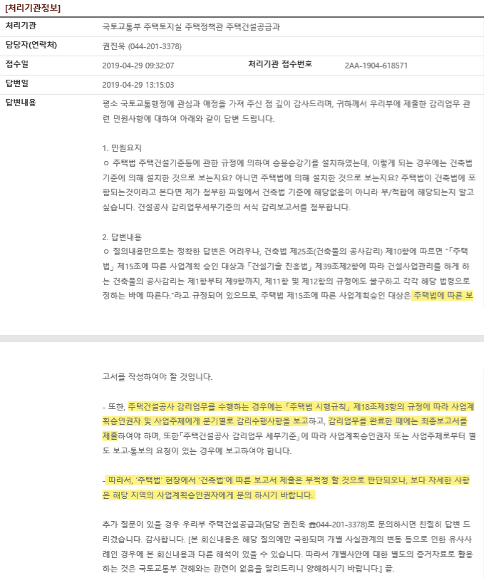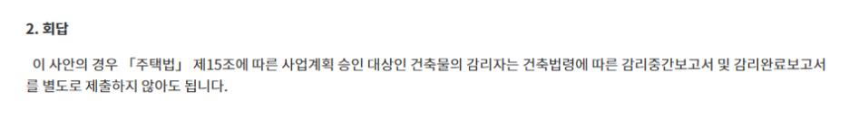 결국 논란이 많은 이항목: 주택법현장에서 건축법 감리중간,완료보고서 해야하는가?는