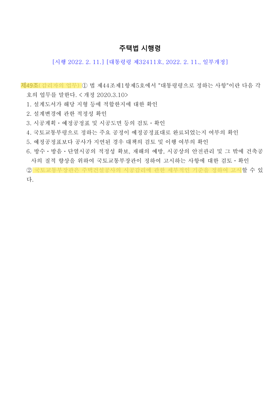 주택법(주택건설공사 감리업무 세부기준)의 시공상세도 작성 관련 질의회신 (0) | 2023.03.27 |