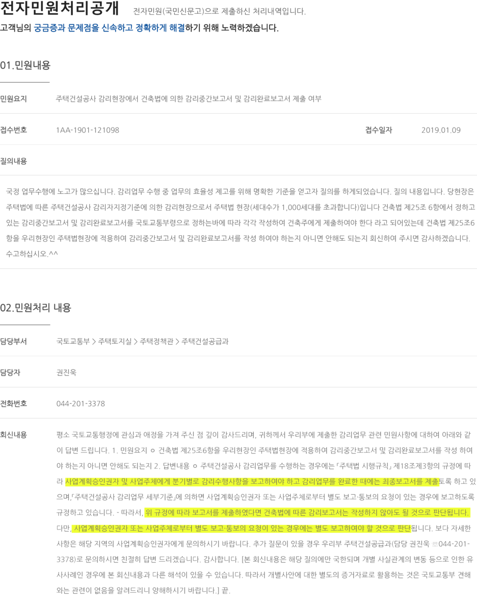 주택법현장에서 감리중간보고서 작성에 관련된 국토부 질의회신 모음입니다.